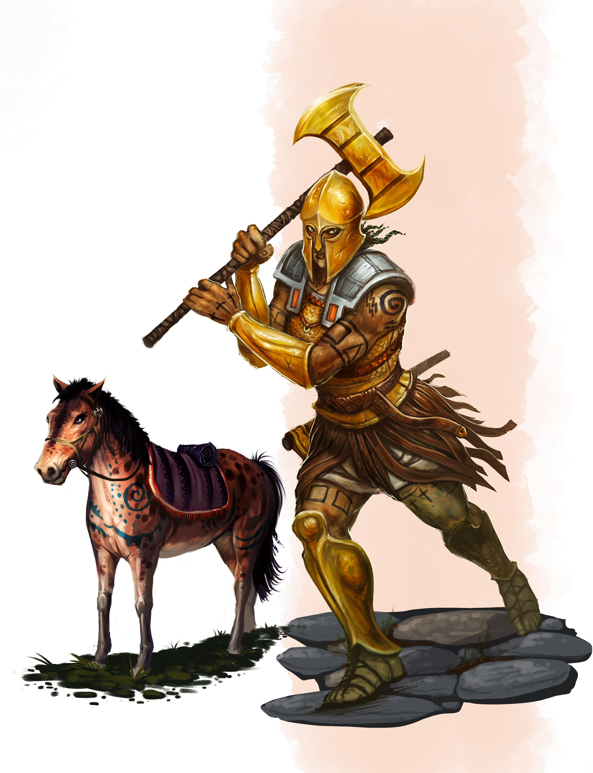 Aranda, en ädling av Esrolia, är stolt och självsäker, hennes kläder och rustningar av fina fabrikat. Som en hängiven yxjungfru av den blodtörstiga jordgudinnan Babeester Gor, är hon prydd med Runes of Earth and Death, bruten av flera våldsamma ärr som visar att hon inte är någon dilettant.