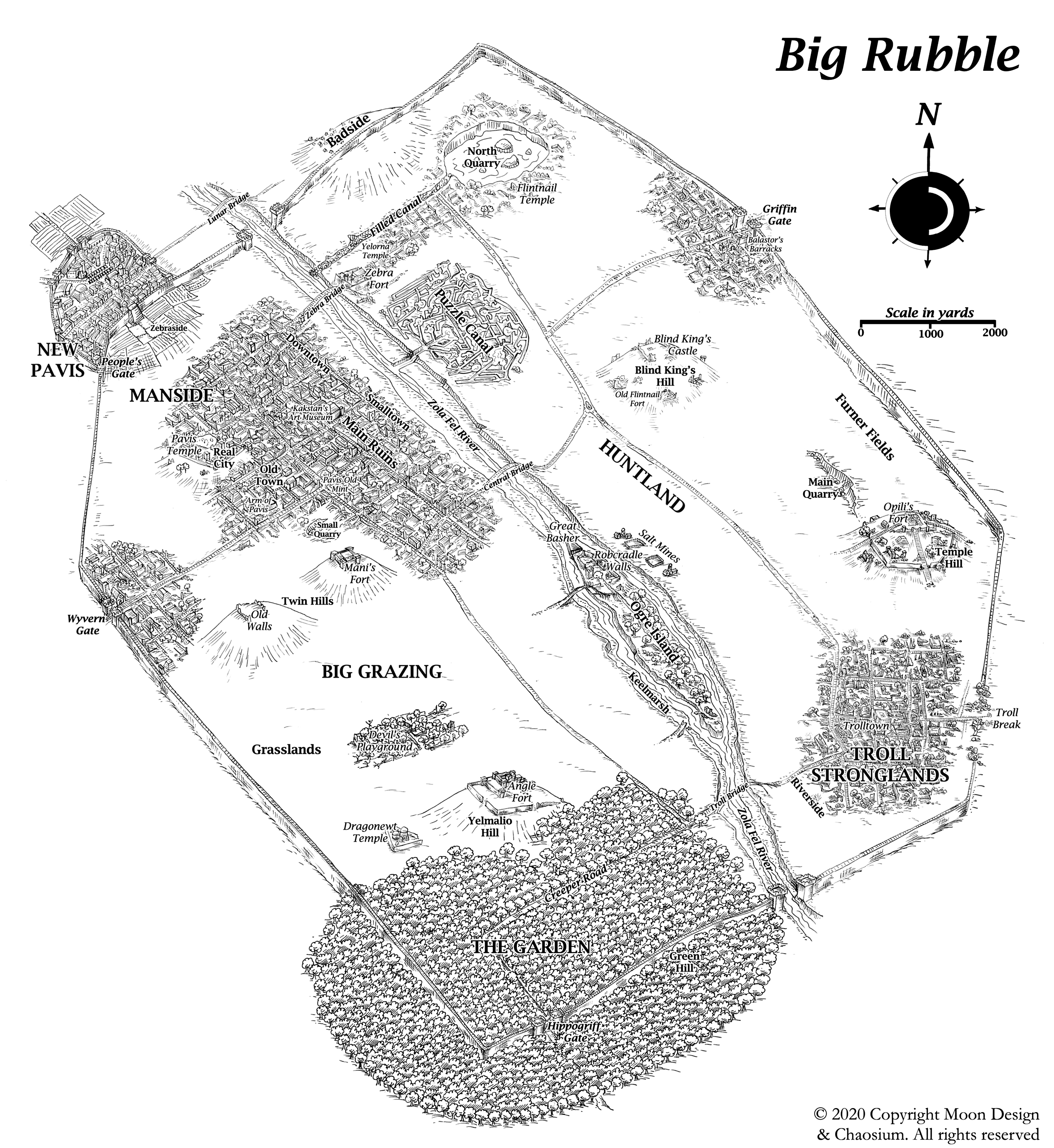 Pålitliga rykten kommer från Ruinen att de ses där, men Griselda är inte med dem, och ändå fortsätter hon att vara frånvarande från alla sina vanliga ställen, och det är en stor gåta. Nu känner jag lukten av en bra historia i detta, och efter att jag har funderat lite bestämde jag mig för att söka upp min kusin Wiglaf, som har en liten vrå på kanten av Riverside, för en gång tidigare när hon inte går att hitta träffar jag på henne där. När jag närmar mig ser jag att dörren är stängd, men jag tänker att detta ökar chanserna att jag har rätt, för Wiglaf har verkligen inte råd att vända bort några kunder, så jag knackar och ropar på honom, och efter ett tag öppnar han.