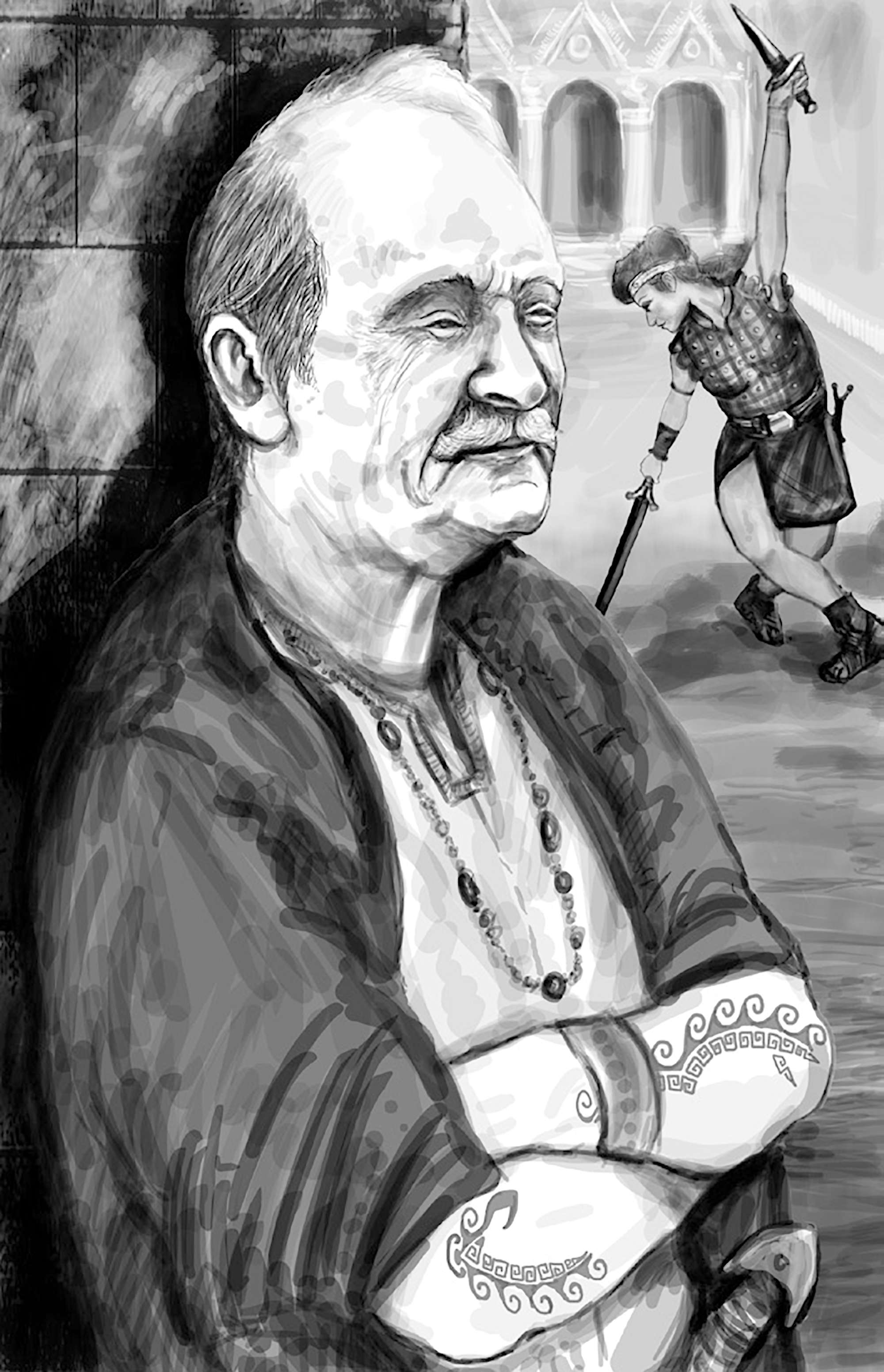 Old Gil ser helt nöjd ut med uppmärksamheten han får och säger, ”Självaste mannen. Han är redan i Bullford, och ryktet kommer före honom. Jag gissar att han tänker ta sig an Pusselkanalen eller hitta Balastors yxa eller något.” ”Varför, jag hör talas om honom när jag är bara en liten unge,” säger Griselda. ”Kan han verkligen vara aktiv fortfarande?” ”Inget hinder,” säger Old Gil. ”Så vitt jag hört blir han känd när han fortfarande är ganska ung. Jag hör till och med att han tog sig in och ut ur Machine Ruins för femton år sedan. Personligen anser jag det vara hans bästa prestation någonsin.”